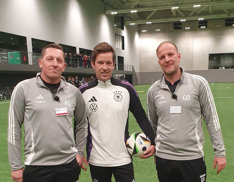 Ein besonderer Höhepunkt war die intensive Trainingseinheit unter der Leitung der DFB-Nachwuchs-Co-Trainer Mike Hanke und Christian Reischke, die gemeinsam mit Cheftrainer Michael Prus das Trainerteam der U15-Nationalmannschaft bilden. Mike Hanke, ehemaliger Bundesliga-Stürmer und Nationalspieler, bringt seine langjährige Profi-Erfahrung seit 2024 als Co-Trainer in der U15-Talentförderung des DFB ein. Christian Reischke ist seit vielen Jahren im Nachwuchsfußball aktiv und unterstützt den DFB als Trainer der U-Junioren mit seinem breiten Erfahrungsschatz in der Talententwicklung. Unter ihrer Anleitung absolvierten die Spieler der JSG Vorharz ein anspruchsvolles Training, das sowohl forderte als auch begeisterte.