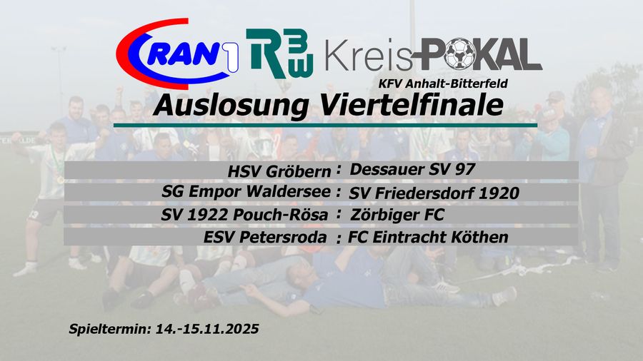 Am heutigen Mittwoch erfolgte die Auslosung der Viertelfinals im RBW-Studio in Bitterfeld. Dabei loste der Vorsitzende des Spielausschusses Philipp Seyffert und den wachsamen Augen von Moderator Michael Krebs spannende Begegnungen aus, die hier nochmal in der Übersicht zu sehen sind.