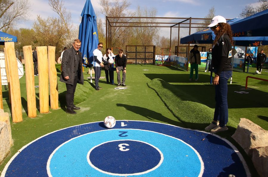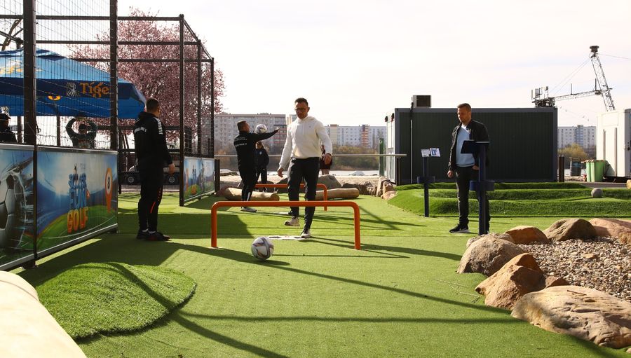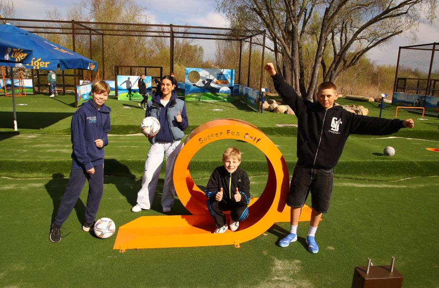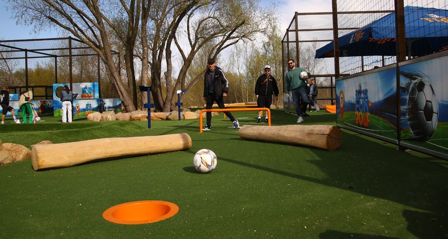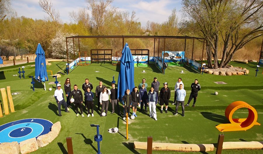 Auf 14 Bahnen können Fußballfans ihr Ballgefühl unter Beweis stellen – eine Mischung aus Minigolf und Fußball, geeignet für Familien, Vereine, Schulklassen und Betriebe.