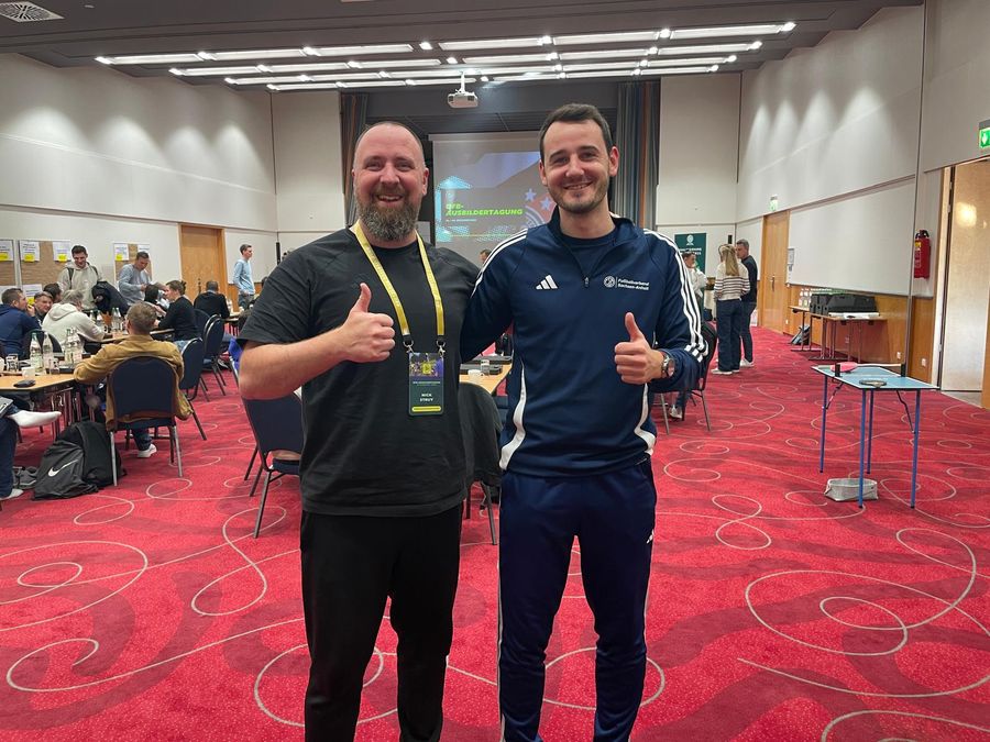 Foto: FSA I Nick Struy (l.) und Julius Riemann nahmen als Vertreter des FSA an der DFB-Ausbildertagung in Nürnberg teil.