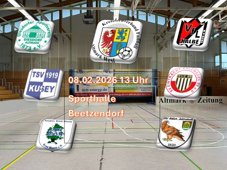 Am Sonntag, den 08. Februar 2026, findet in Beetzendorf die Hallen-Kreismeisterschaft der Herren des Kreisfachverbandes Fußball Altmark West statt. Ab 13:00 Uhr kämpfen sechs qualifizierte Mannschaften in der Sporthalle Beetzendorf um den begehrten Titel des Hallenkreismeisters.