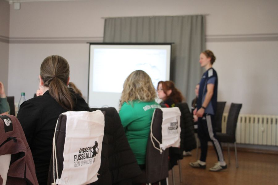 Der Lehrgang begann am Vormittag mit einer intensiven Theoriephase. In dieser Einheit wurden grundlegende Inhalte der Trainingsgestaltung, methodische Prinzipien sowie erste Einblicke in die Rolle der Trainerin vermittelt. Die Teilnehmenden bilden eine sehr heterogene und bereichernde Gruppe, da sowohl Trainerinnen aus dem Kinder-, Jugend- und Erwachsenenbereich, als auch Frauen, ohne Vorerfahrungen als Trainerin teilnehmen. Einige können auch Erfahrungen als aktive Spielerin einbringen, sodass sich unterschiedliche Perspektiven auf das Training und die Trainerinnentätigkeit ergeben.