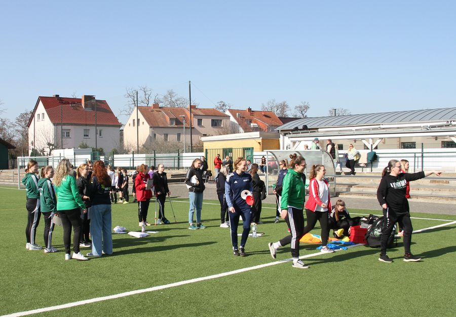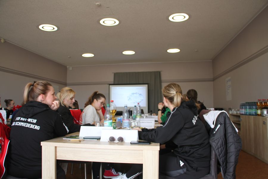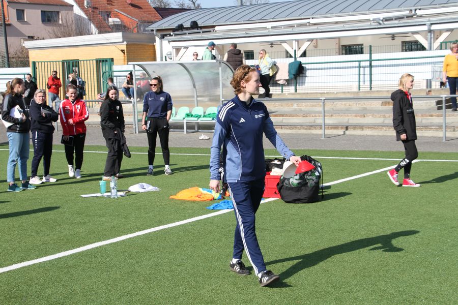 Zu Beginn erlebten die Teilnehmerinnen eine von den Referentinnen geleitete Trainingseinheit mit einer Demomannschaft (E-Jugend SG Union Sandersdorf). Dabei konnten sie den Aufbau und die Struktur der Trainingseinheit sowie Coaching-Impulse beobachten und Ideen für die eigene Trainingspraxis sammeln. In der zweiten Einheit wurden sie selbst aktiv und konnten geplante Trainingsformen ausprobieren.