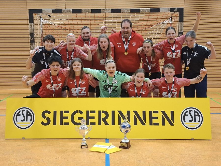 Am morgigen 15.02.2026 stehen die Akener Frauen im thüringischen Bad Berka den nordostdeutschen Futsallandesmeistern im NOFV-Ausscheid gegenüber. Qualifiziert haben sich die Elbestädterinnen durch den Titelgewinn in Barleben, bei sie sich gegen die Verbandsligisten aus Dölau, von Besiegdas Magdeburg und von Einheit Halle in der Vorrunde als Zeitplatzierte für das Halbfinale qualifizierte. Nach doppeltem Halbfinalerfolg im Entscheidungsschießen holten sich die Akenerinnen wiederum im Entscheidungsschießen den Titel gegen den SV Allemania Jessen.