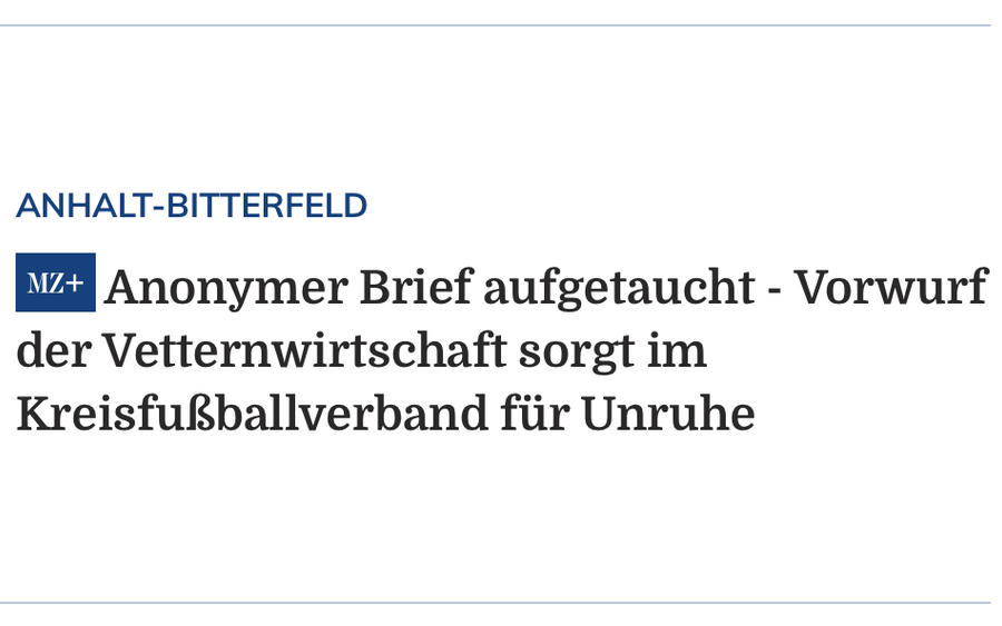So wird der Präsident des Kreisfachverbandes Fußball Anhalt-Bitterfeld in der Mitteldeutschen Zeitung in der Ausgabe vom vergangenen Samstag zitiert.