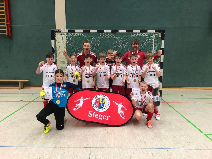 Vor 167 Zuschauern in der Zinnberghalle erlebten die Fans eine spannende und bis zum Schluss offene Hallenkreismeisterschaft der E-Junioren. Die Entscheidung fiel erst im letzten Spiel – und das hatte es in sich.