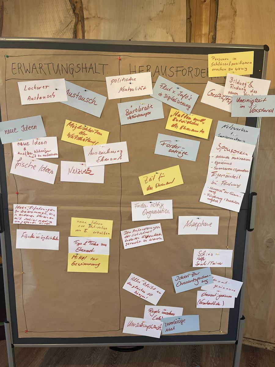 Die Teilnehmenden brachten ihre Erwartungen und Herausforderungen offen auf den Tisch: Wie schaffen wir Akzeptanz und Begeisterung für das Ehrenamt? Wie gewinnen wir Sponsoren? Wie sichern wir Fördermittel? Vor allem aber: Wie können wir uns besser vernetzen und voneinander lernen?