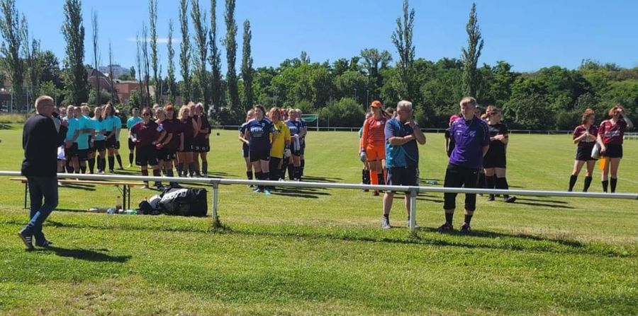 Mit dieser bunten Zusammensetzung an Teams wurde um 11:00 Uhr das Turnier von Holger Drischmann, Vorstand des SV Eintracht Bad Dürrenberg, Dany Beck, Vizepräsidentin Gleichstellung, Vielfalt und Teilhabe des LSB, Matthias Ermisch, Frauen- und Mädchenausschuss FSA, und Stefanie Dreißig, Gesellschaftliche Aufgaben FSA, feierlich eröffnet.