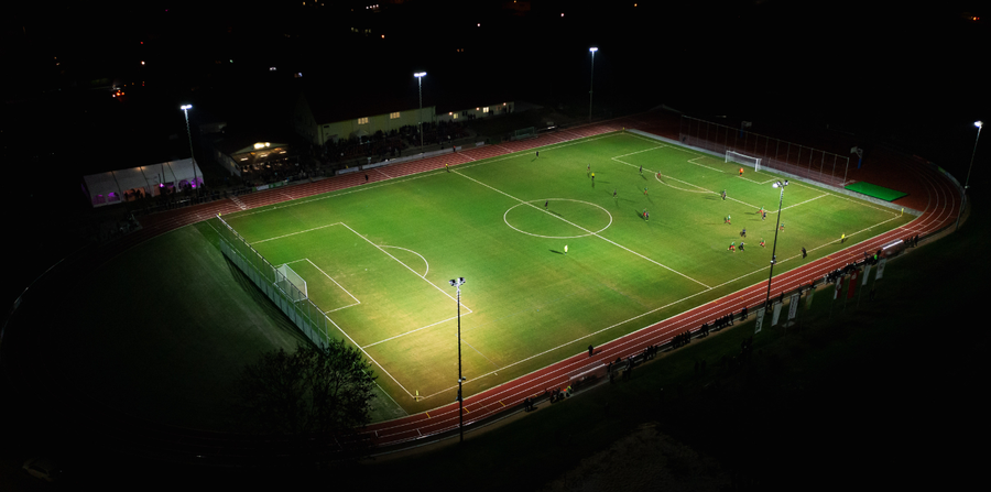Vom Februar bis Mai 2024 wurde mit einer Gesamt Brutto Bausumme von 135.000,00 Euro eine Soccer Court Doppelanlage errichtet. Sie besitzt eine Gesamtgröße von 520,00 m² (zwei Spielfelder je 20,00 m x 13,00 m). Auf vorhandenem Tragschichtaufbau wurde eine Elastikschicht aus Pro Play Sport 20 erstellt und mit gewebten Kunstrasen KT Supra verlegt. Dieser wurde mit 10 kg/m² Sand verfüllt. Zusätzlich wurde eine 3 Mast Flutlichtanlage (Höhe 8,00 m) mit 6 Stück LED Strahlern mittig aufgestellt. Umrandet wird die Anlage aus einem Stabgitterzaun (Höhe 4,00 m) mit integrierter Bande (Höhe 1,00 m) aus Aluminium.