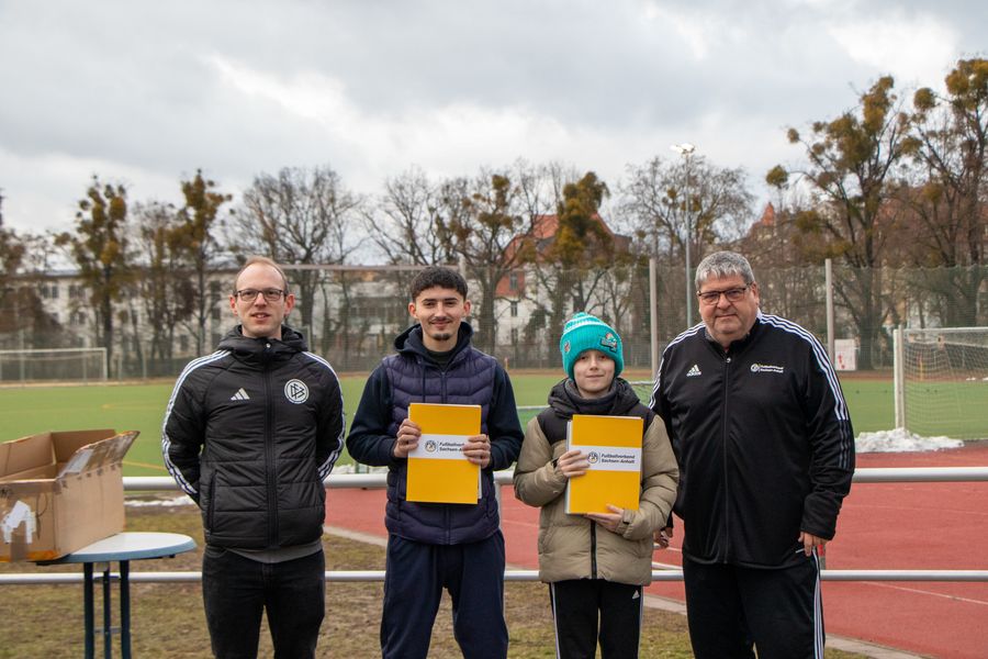 Besonders hervorzuheben sind die herausragenden Leistungen der beiden Lehrgangsbesten Lucas Weimer (Union Sandersdorf) und Mohammed Diab (Victoria Wittenberg). Beide absolvierten die theoretische Prüfung mit der maximal erreichbaren Punktzahl von 60 Punkten und stellten damit ihr außergewöhnlich fundiertes Regelwissen eindrucksvoll unter Beweis. Mit ihrer konzentrierten Vorbereitung, ihrem sicheren Umgang mit den 17 Fußballregeln sowie einem ausgeprägten Verständnis für Spielsituationen setzten sie Maßstäbe innerhalb des gesamten Teilnehmerfeldes.